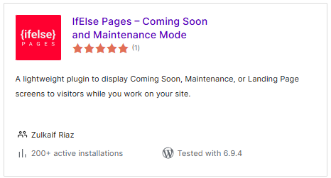 This plugin allows users to create a maintenance or “coming soon” page while working on their website. It is commonly used, which makes it relevant for evaluation, but it only has one review at the time of this article.